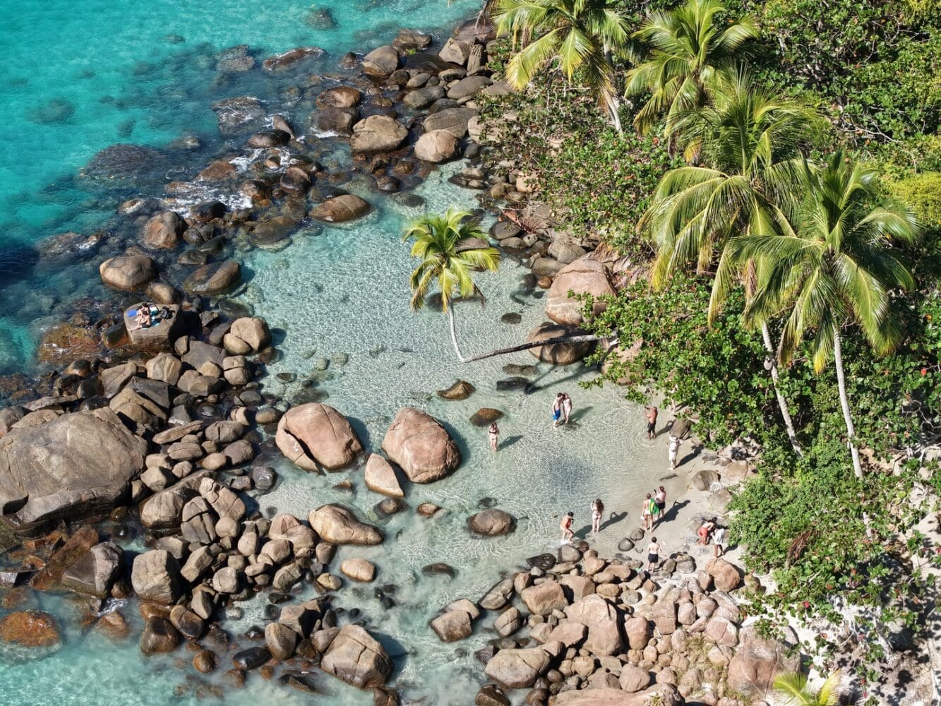 Após essa experiência incrível, seguimos para a Praia do Aventureiro, que é a terceira parada e se tornou a nossa praia favorita do passeio. No local existe um coqueiro envergado que faz fila para fazer fotos, com um cenário incrível das pedras, águas cristalinas que formam piscinas naturais e os coqueiros.