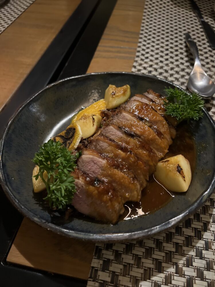 Como prato principal é possível aproveitar algumas opções deliciosas, como o magret de pato com molho gastrique francês com butiá, acompanhado de arroz crioulo com nuts e pêssegos frescos.