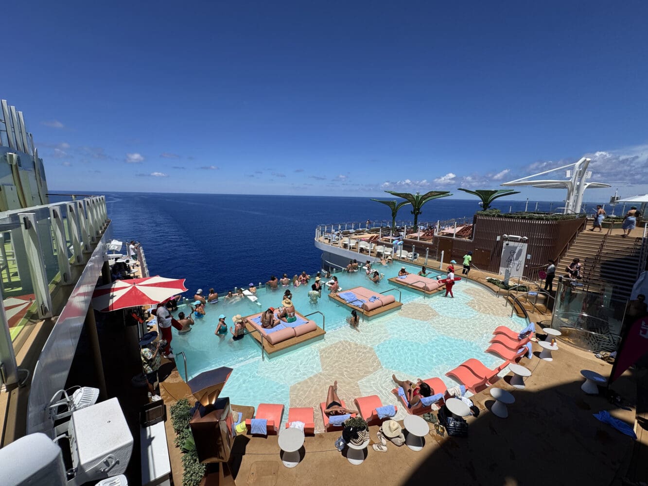 Outro ponto interessante é que o Star of The Seas tem o maior parque aquático já construído em um navio de cruzeiro. Por isso, oferece toboáguas radicais, piscinas com ondas, áreas infantis coloridas e espaços perfeitos para relaxar.